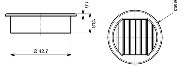 Round air vent, not adjustable. Mounting hole Ø 70mm, installation depth 12mm.