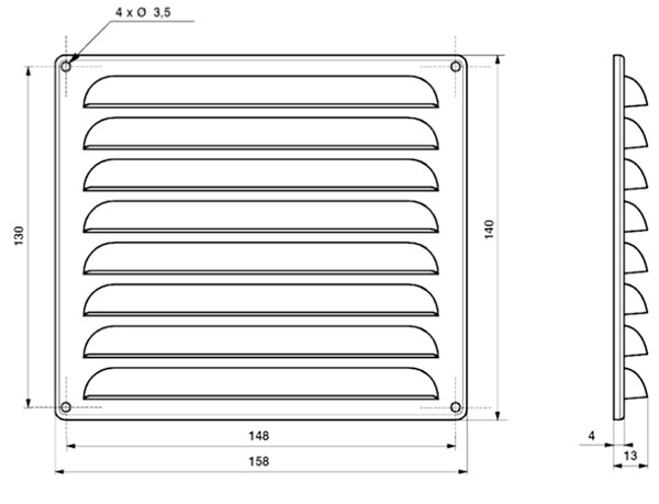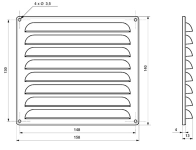 AIR GRILLE 158X140MM BLACK