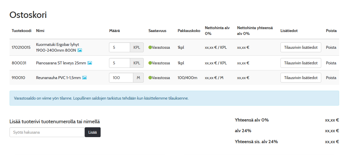 - Tarkista vielä, että saatavuus ja toimitusajat eivät ole muuttuneet