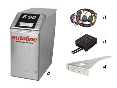 Hiekoitinlaite S90 on suosituin Autoline-hiekoittimien suosituin malli kaikkiin ajoneuvoihin, joissa on riittävästi tilaa. Levitysaika 2-3min., levitysmatka 700-1000m. Sarja sisältää 2 kappaletta hiekoittimia (vasen ja oikea), kiinnikkeet, käyttöyksikön sekä johtosarjan. Kuvassa Volvon RST-hiekoitinsarja. Saatavilla myös puolisarja.