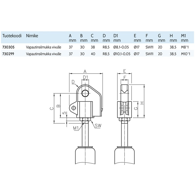 730299 Vapautinsilmukka vivulle 1kpl 40g 4,00 € VarastossaNormaali toimitusaika 2-3 työpäivää