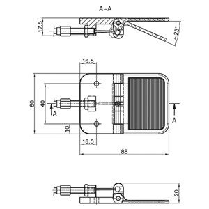 Vaijerivapautusjärjestelmä lukittavalle kaasujouselle, jossa lyhyt vapautusmatka < 1 mm.