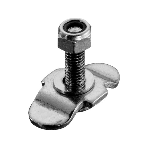 Kromattu kiinnitysankkuri lentokonekiskoon kiinnitykseen. Pultin kierre M8.