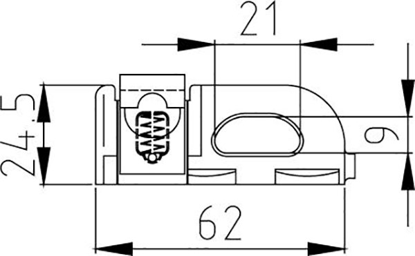 Kiinnitysankkuri lentokonekiskoon kaksinkertaisella kiinnityksellä. Sidontalujuus 1100daN.