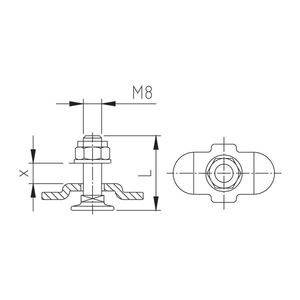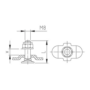 Kiinnitysankkuri lentokonekiskoon kiinnitykseen. Pultin kierre M8.