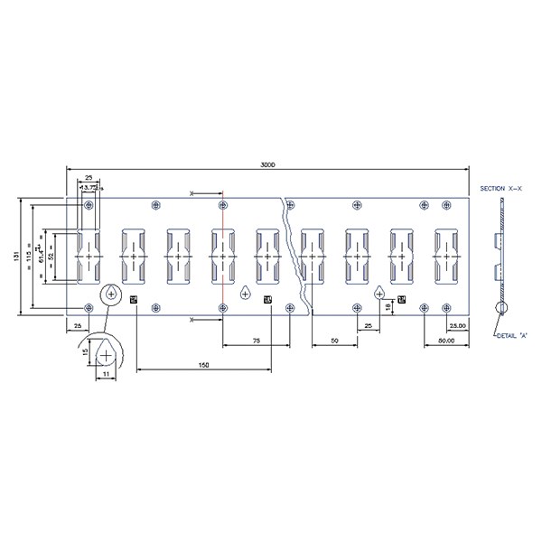 Sidontakisko Universal teräs vedenpoistoaukoilla, pinta-asennus.Combi. Reikä 25mm, reikäväli 50mm.