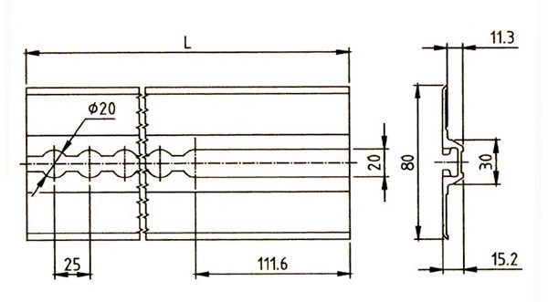 Upotettava välitasopalkin ATD-F-kisko yhdellä uralla. Kohdistusmerkinnät. Saatavilla myös asennusrei´illä.