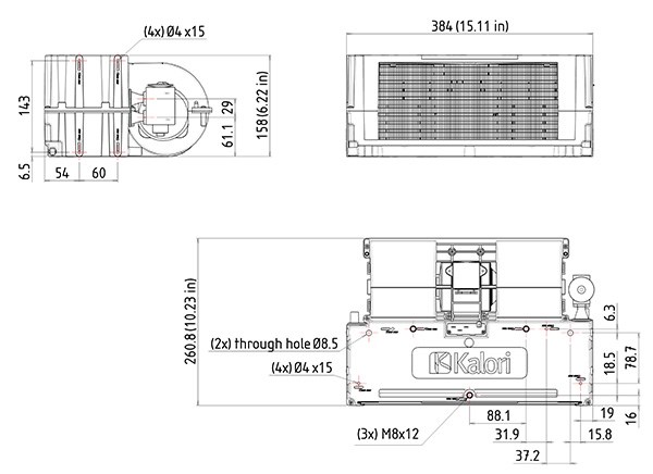 Vaakasuora ilmastointilaite. Saatavana myös yhdistelmäversiona (ilmastointi+lämmitin). Kool Klim ED6 on suunniteltu käytettäväksi erityisesti ohjaamoissa. Ilmaputken halkaisija 55mm. Ilmastointiteho 5,7kW. Sähkönkulutus 180W. Kolme puhallinnopeutta. Asennussyvyys 260mm.