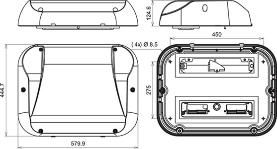 Katolle asennettava ilmastointijärjestelmä. Liitospisteet sivulla. Saatavana myös malli, jossa liitokset takana. Ilmastointiteho 5,5kW. Sähkönkulutus 150W. Kolme puhallinnopeutta.