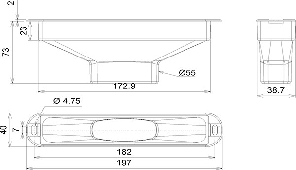 Sovitin halkaisijaltaan 55mm ilmaputkelle ilmasuuttimeen 440143. Asennusreikä 172,9 x 38,7mm.