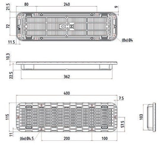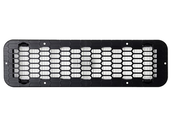 Ilmaritilä vaihdettavalla suodattimella ilman kierrätykseen. Suodatin vaihdettavissa helposti ilman työkaluja. Asennusreikä 362 x 103mm, asennussyvyys 23mm.