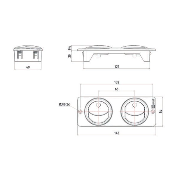Ilmasuutin kahdella suljettavalla ja suunnattavalla suuttimella.