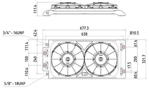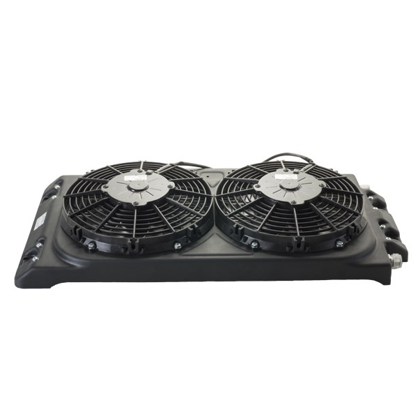Rinnakkaisvirtaus lauhdutin kahdella tuulettimella. Teho 7,5kW. Valikoimassa 12- ja 24V-mallit.