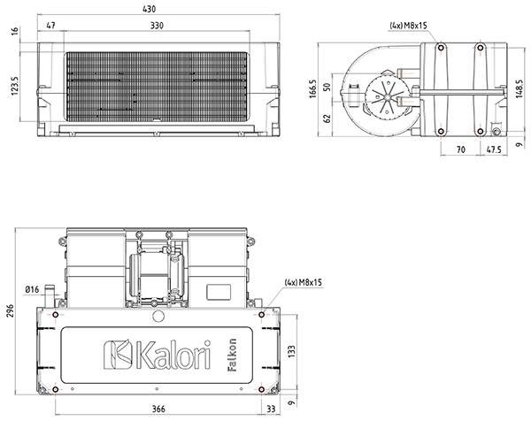 Vesikiertoinen lämmitin. Varustettu tehokkaalla puhaltimella. Erittäin pieni painehävikki, mikä on tärkeää pitkille ilmakanaville. Sopii erinomaisesti keskikokoisiin ja suuriin ohjaamoihin sekä hytteihin. Saatavana sähköisenä versiona tai pelkkänä ilmastointi- tai yhdistelmälaitteena.