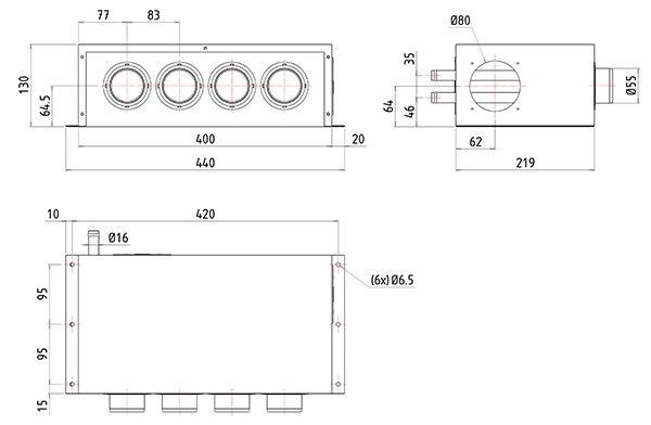 Lämmitin, joka voidaan asentaa esim. konehuoneeseen, jolloin ilma voidaan imeä konehuoneen ulkopuolelta kahden imuilma oton avulla. Ruostumattomasta teräksestä valmistettu kotelo, neljä halkaisijaltaan 55mm puhallusilma putkilähtöä. Lämmitysteho 10kW.