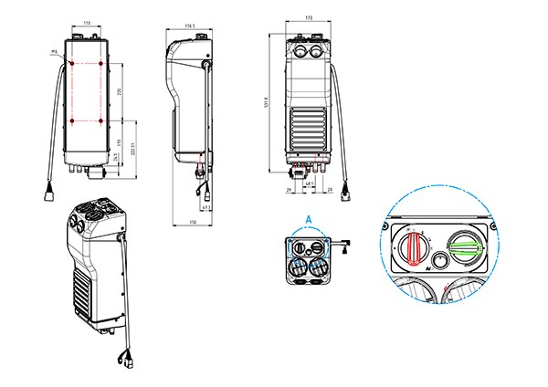 Pystysuoraan asennettava ilmastointi-/lämmityslaite pieniin ohjaamoihin, minikaivureihin, trukkeihin ja pakettiautoihin. Täydellinen ilmanvaihto ja lämpötilan säätö. Lämmitysteho 3,2kW, ilmastointiteho 3,0kW.
