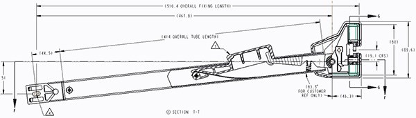 Lukko/vedin/kyynärnoja, pitkä malli. Sisältää kahvan, vastalevyn ja suojamuovin. Kuvassa oikea. Lukon osista kuvat ja lisätiedot erikseen.