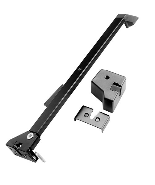 Lukko/vedin/kyynärnoja. Pitkä tai lyhyt tasolukittava, väri musta. Sisältää kahvan, vastalevyn ja suojamuovin.