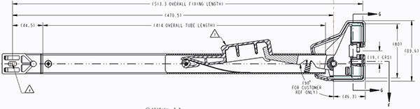 300700 Lukko hytin oveen pitkä oikea 1kpl 526mm 89,6mm 51mm 850g 18,50 €