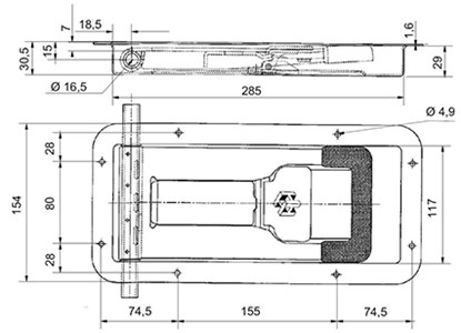 Käsikahvassa musta ABS-pinnoitus. Tangon kiinnitys joko niittaamalla tai hitsaamalla. Voidaan varustaa lukkosylinterillä. Lukintamekanismin kieli kuuluu toimitukseen. Lukon pohjassa aukko sisäavausta varten. Kaksi erillistä jousta lukitsimessa varmistavat kahvan kiinni pysymisen.