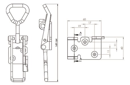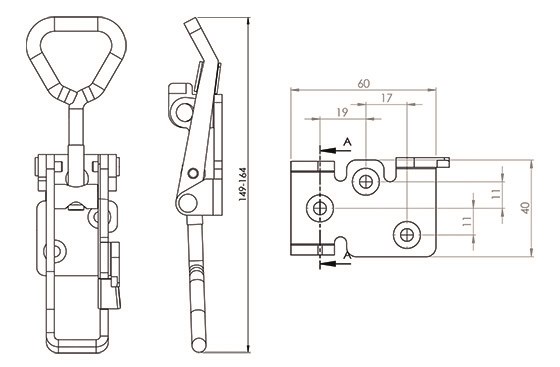 Varustettu turvalukitsimella. Lukittavissa. Kitkaruuvi varmistaa silmukan pysymisen halutussa asennossa. Vastakappaleista kuvat ja lisätiedot alla.