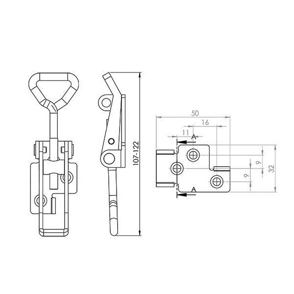 Lukittava ja säädettävä 107-122mm epäkeskosalpa. Valmistettu elektrolyyttisesti kiilloitetusta ruostumattomasta teräksestä, joka tarjoaa paremman lämmönkeston. Lukittava ja varustettu lukitussalvalla. Ruuvi- tai niittikiinnitys.