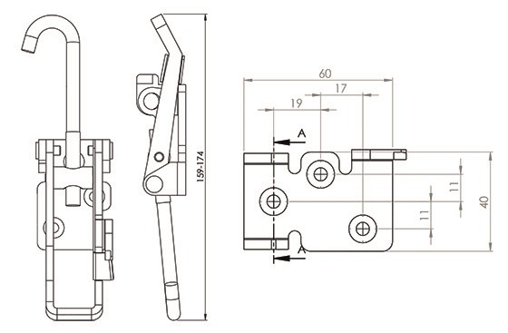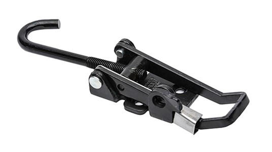 Koukkukiinnitys, varustettu turvalukitsimella. Lukittavissa.