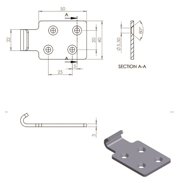 363018 Vastakappale 22C rei'itetty RST RST AISI 316 1kpl 72mm 40mm 9mm 57g 7,80 € VarastossaNormaali toimitusaika 2-3 työpäivää