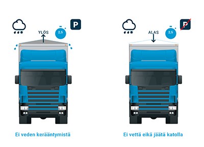 kiinnitetty sekä kattopeittoon, että poikkikannattimiin. Airtube täyttyy paineilmalla noin 3 minuutissa joko kääntämällä ohjausvipua tai täysin automaattisesti kuljettajan kytkettyä sytysvirran pois. Airtube laajenee ja nostaa katon keskikohdan ylös koko pituudeltaan estäen veden jäämisen katolle. Lisäksi mahdollinen kondenssivesi kapellikaton sisäpinnassa valuu kuormatilan reunoilta alas.