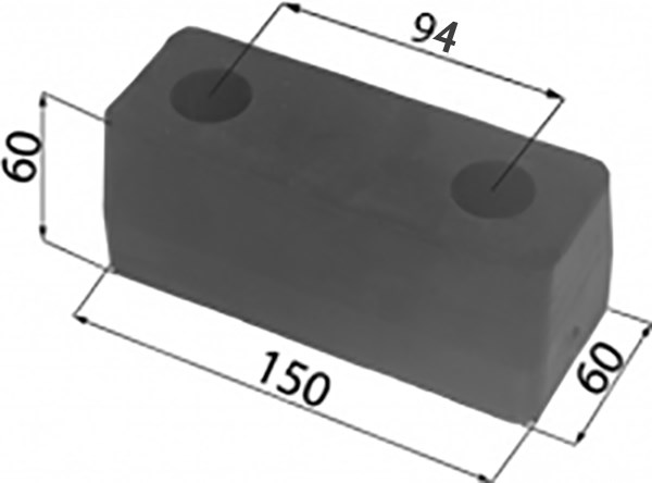 Törmäyskumi, jonka kiinnitysreikien halkaisija 14mm, reikäväli 94mm.