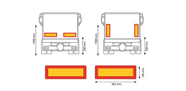 Perävaunukilpi pari ECE R70 01. Sarja sisältää kaksi samanlaista tuotetta.