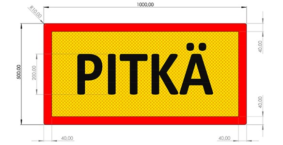 Kilpi yli 25,25m pituisen ajoneuvoyhdistelmän merkintään. ECE R70 01. Myös muut koot saatavilla tilauksesta.