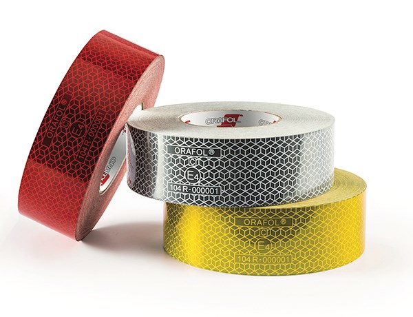 Itseliimautuva teippi ajoneuvojen > 3500kg ääreismerkintään. ECE R104-vaatimusten mukainen. Asennuslämpötila 15-38˚C. Varastointi huoneenlämmössä. Sivu- ja takamerkintään. Punainen VAIN takamerkintään.