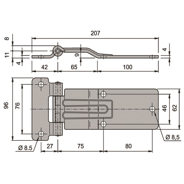 RST sarana 180° aukemalla. Porrastus tiivisteen ylimenoa varten 9mm. Välyksetön. Suunniteltu käytettäväksi trailereiden oven saranoina.