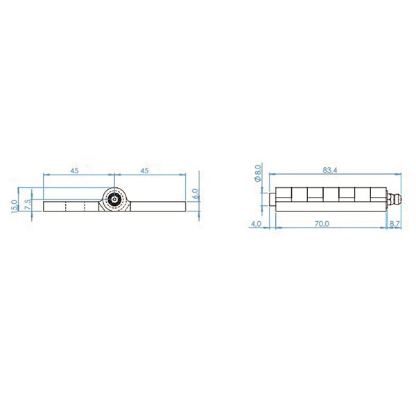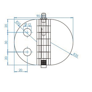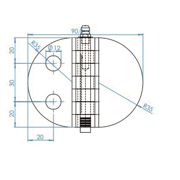 Pyöreä lehtisarana käsittelemättömästä teräksestä. Vasemmalla lehdellä ø12mm reiät, reikäväli 30mm.