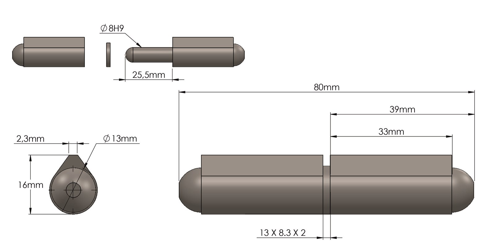 Nostosarana hitsattava pallopää, prikka ruostumattomasta teräksestä.