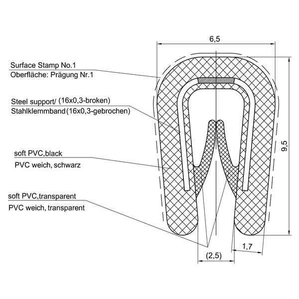 Reunanauha PVC 1,0-2,0mm musta, taipuisa teräsrunko.
