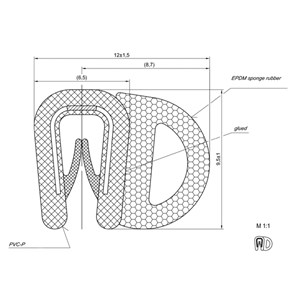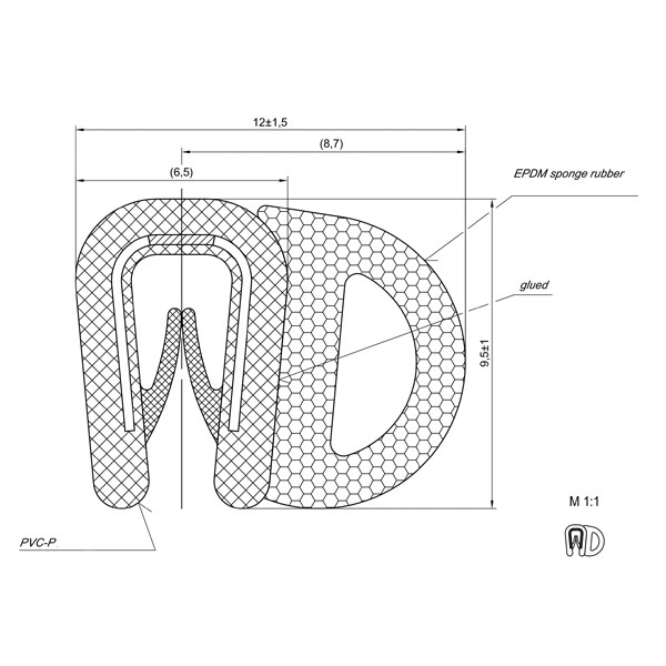 Teräsrunkoinen, PVC, tiivistenauha sivupussilla, 1,0-2,0mm ainevahvuudelle.