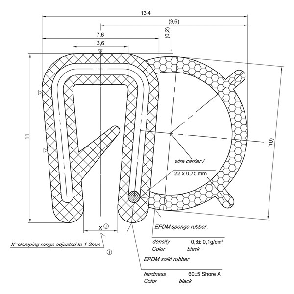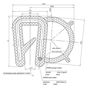 Vaijerirunkoinen tiivistenauha sivupussilla 1,0-2,0mm ainevahvuudelle.