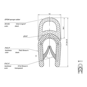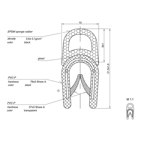 Teräsrunkoinen, PVC, tiivistenauha yläpussilla, 1,0-4,0mm ainevahvuudelle.