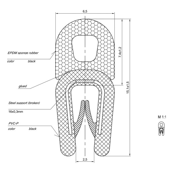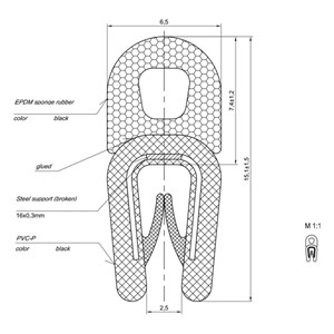 Tiivistenauha yläpussilla, 1,0-2,0mm ainevahvuudelle. EPDM. Runko PVC/teräs.