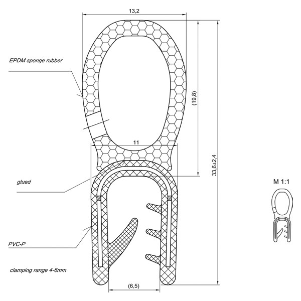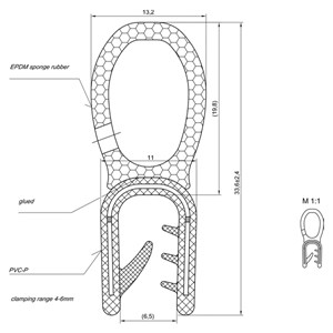 Tiivistenauha yläpussilla 4,0-5,0mm ainevahvuudelle. EPDM. Runko PVC/teräs.