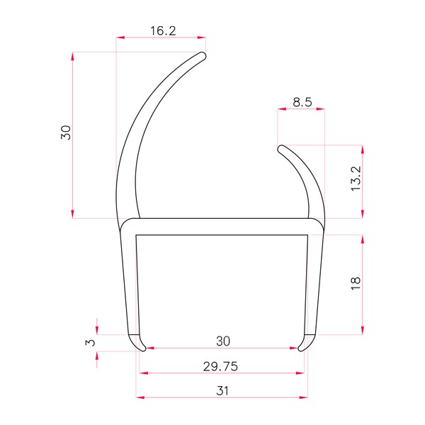 TIIVISTEPROFIILI PVC 30/5000MM OVI