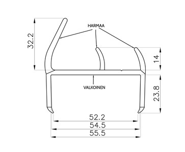 Tiivistehuulet pehmeää ja runko kovaa PVC-muovia. Oven tiivistämiseen.