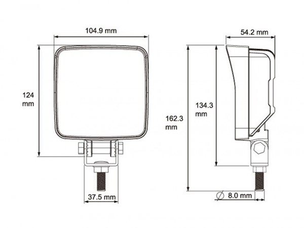 Tehokas E-peruutusvalo LED. Mitattu valoteho 1036lm (teoreettinen 1440). Valossa on symmetrinen valokuvio, jossa hyvä levitys valoalueella. Peruutusvalo voidaan asentaa sekä pystyyn, että alaspäin roikkuvana. Johto 30cm Deutch-liittimellä.
