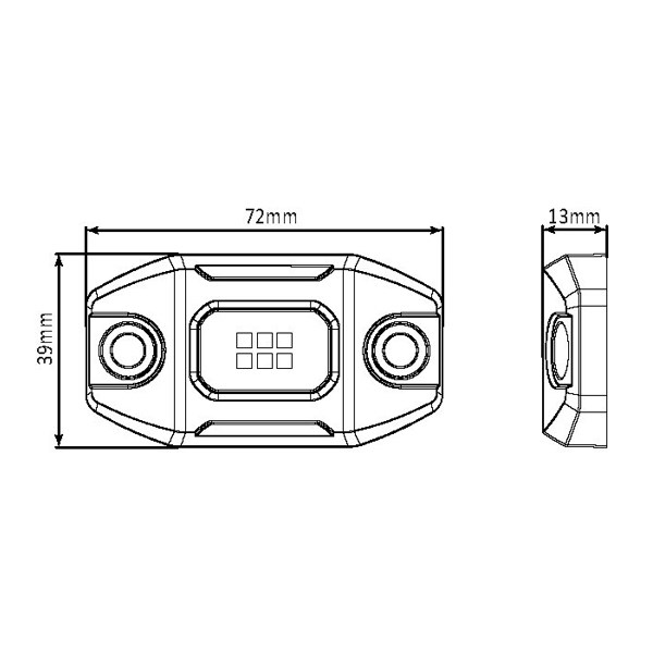 Kompakti kohdevalo leveällä valokuviolla. Mukana tulevat asennuskumit mahdollistavat asennuksen putkeen tai tasaiselle pinnalle.