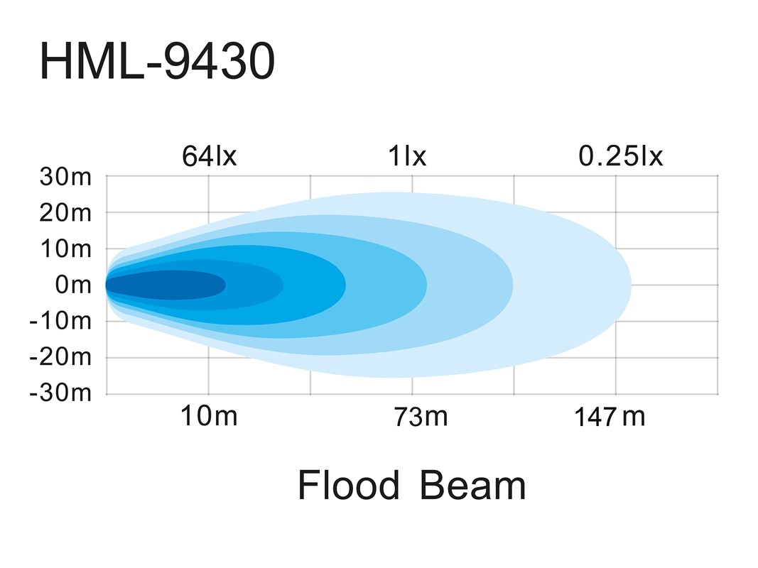 Briodlights LED työvalo leveällä valokuviolla. Valoteho 2000lm, teho 30W, 1lux@73m.