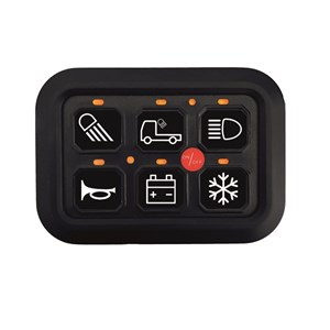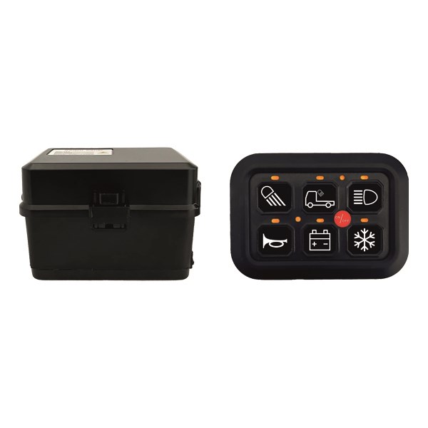Briodtech kytkentärasia sekä ohjausyksikkö 6:n eri laitteen ohjaukseen. Ohjausyksikkö himmennettävällä taustavalolla sekä 6:lla taustavalaistulla painikkeella. 25 erilaista merkkisymbolia painikkeita varten.